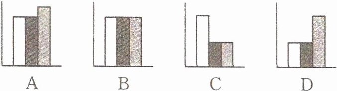 分析选项A:条形图中白色直条最高,灰色直条次之,深灰色直条最矮,不符合扇形统计图中各部分占比关系。