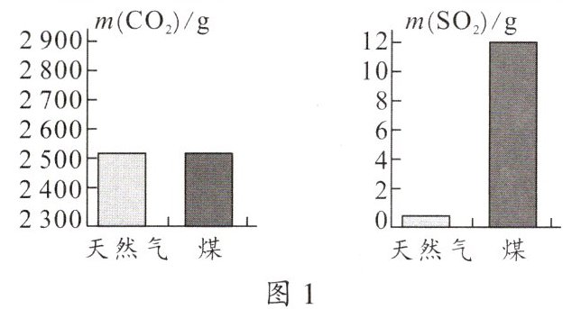 (2)沼气、天然气的主要成分也是甲烷,充分燃烧1000g天然气和煤所产生的CO₂和SO₂气体的质量如图1所示,请写出甲烷燃烧的化学方程式: