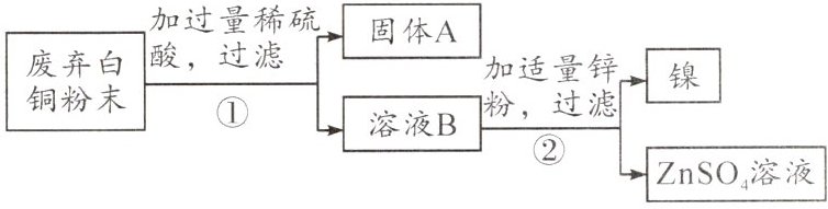 3. 白铜是铜、镍(Ni)合金,某学习小组同学利用废弃的白铜设计了如下实验流程回收铜、镍、锌,则铜、镍、锌这三种金属的活动性顺序为(