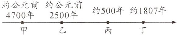 1. 一般来说,金属越活泼,冶炼越困难,人类使用该金属的时间就越迟。如图为铁、铜、钠、锌四种金属的最早冶炼历史年代,则甲代表的金属是(