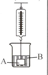 练习4 [跨学科·物理]如图所示,弹簧秤下挂着一重物A,烧杯中盛有溶液B。若:①A为铁块,B为稀硫酸;②A为铁块,B为硫酸铜溶液;则弹簧秤的读数将(铁块体积与溶液密度变化均忽略不计) (