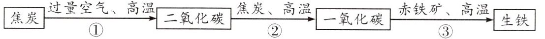 1. 炼铁厂以赤铁矿石、焦炭、石灰石、空气等为原料炼铁,主要反应过程如图,下列说法错误的是 (