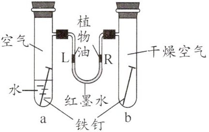 2. [跨学科·物理]如图所示是探究铁锈蚀条件的装置,调节L端与R端的液面使之高度一致,塞紧木塞,一周后观察。下列推断错误的是(