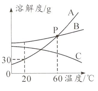。(3)20℃时,将30gA物质加入50g水中不断搅拌,形成溶液的质量是