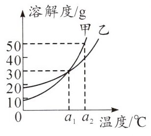)A. 在a₁℃时,甲和乙的溶解度均为30g