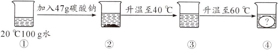 g碳酸钠;升温至60℃时,烧杯④中会出现的现象是有晶体析出