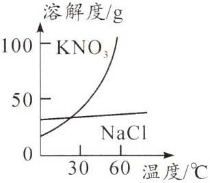 (填字母序号)。①溶质质量分数:${NaCl}>{KNO_{3}}$ ②溶剂质量:${NaCl}={KNO_{3}}$ ③溶液质量:${NaCl}>{KNO_{3}}$