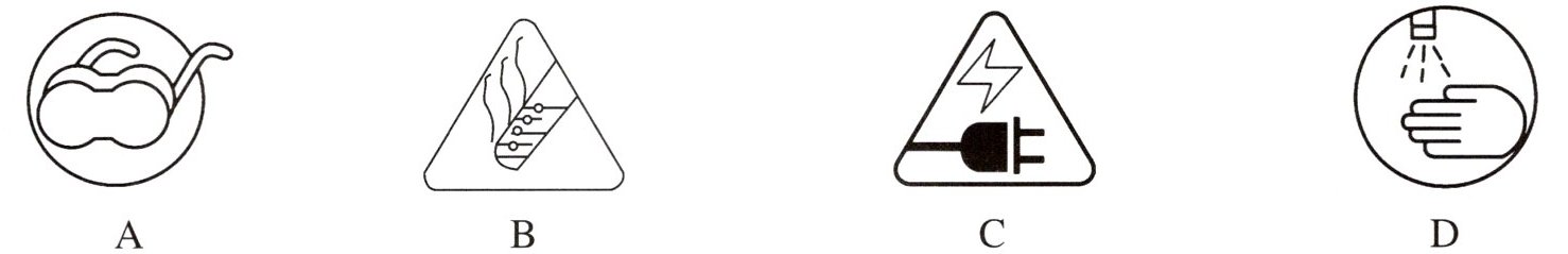 1. 在实验室进行水的沸腾实验时,不需要标注的实验图标是 (