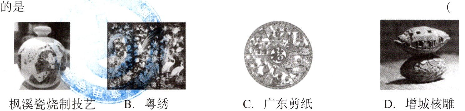 4. (2024·韶关一模)广东有许多传统手工技艺被列入国家非物质文化遗产,下列涉及化学变化的是 (