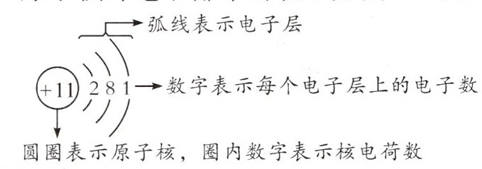 3.原子核外电子排布的表示方法一原子结构示意图(以钠原子为例)。