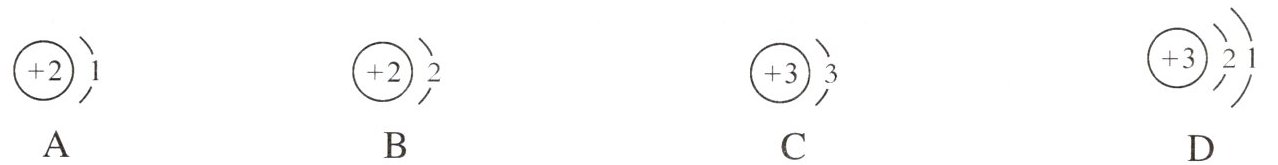 2. 2024年6月,嫦娥六号完成世界首次月球背面采样。月壤中含有丰富的氦−3,可作为核聚变燃料,其原子核是由2个质子和1个中子构成的,氦−3的原子结构示意图为 (