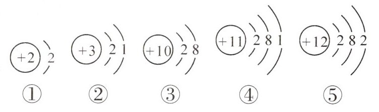 (填序号,下同);在化学反应中易失去电子的是②④⑤