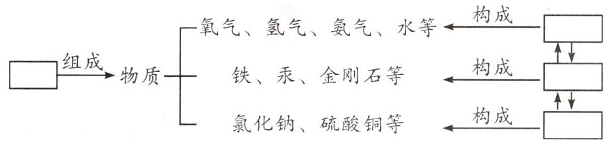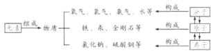 3. 物质、元素、分子、原子、离子的关系: