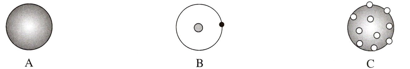 (6)同学们用橡皮泥、绿豆、铁丝等制作了 3 种原子结构模型,如下图所示。其中能代表汤姆孙原子结构模型的是