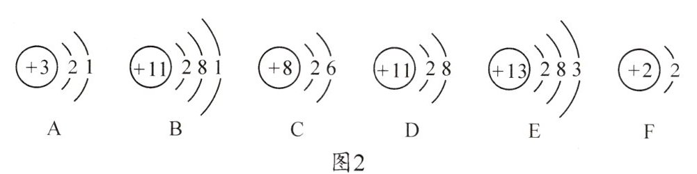 种元素。A~F的粒子中,具备稳定结构的是DF