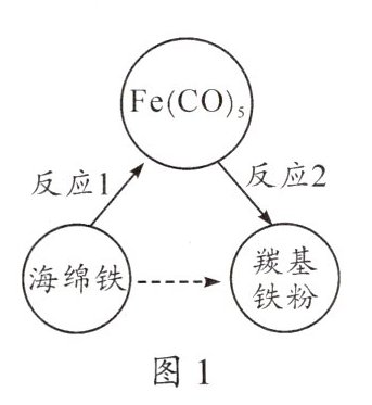(2)反应1的化学方程式为$Fe+5CO\xlongequal{高温}Fe(CO)_{5}$。用100kg含铁96%的海绵铁,理论上可制备$Fe(CO)_{5}$的质量是多少(写出计算过程)?