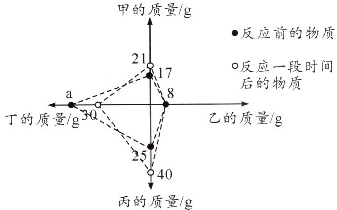 3. 某密闭容器中有甲、乙、丙、丁四种物质,在一定条件下发生化学反应,测得反应前及反应一段时间后各物质的质量变化如图所示,下列说法正确的是 (