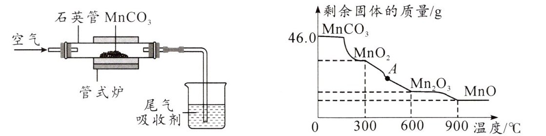 (2024春·南海区校级月考)二氧化锰因应用广泛而备受关注。某研究小组采用如图装置通过焙烧MnCO₃制取MnO₂,发生反应的化学方程式为:$2MnCO₃+O₂\xlongequal{\triangle }2CO₂+2MnO₂。$