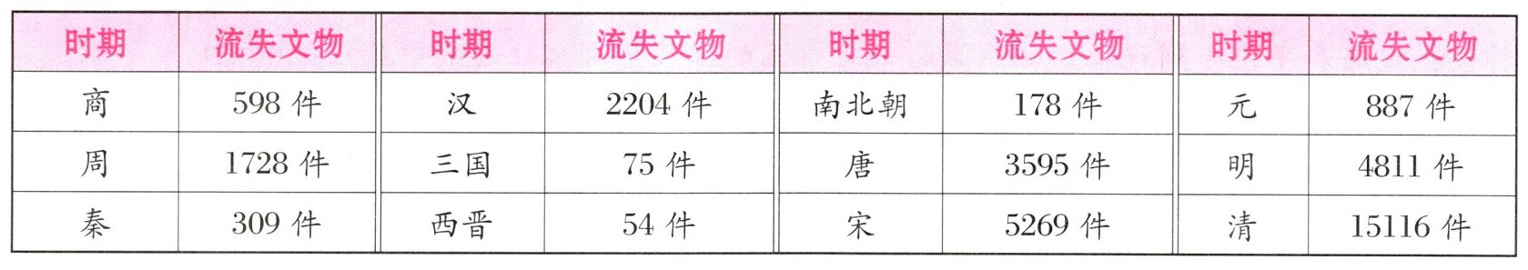 )(3分)A. 从中国文物学会和联合国教科文组织的统计中可以看出,战争导致我国文物流失极严重。