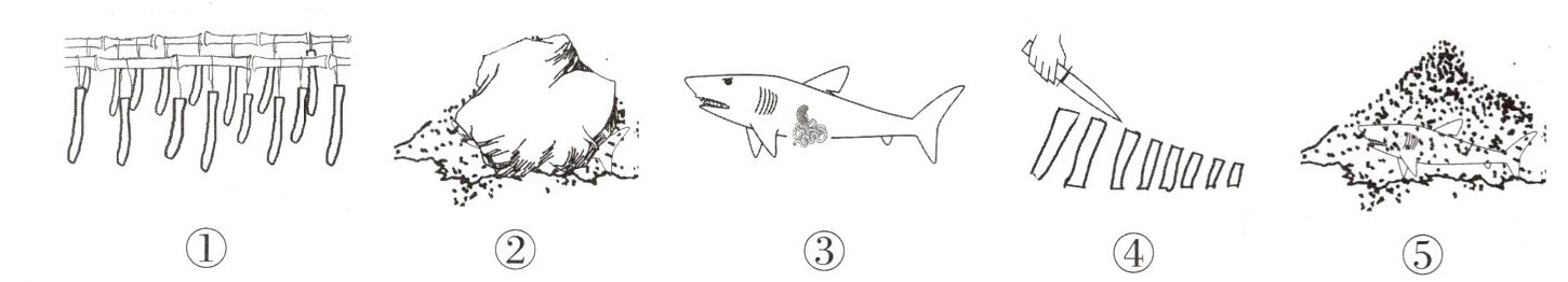 )2. Which of the following shows the right order of making Hakarl?A. ④→③→①→⑤→②