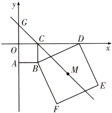 (2)设正方形$BDEF$的对称中心为点$M$,直线$CM$交$y$轴于点$G$.随着点$D$的运动,点$G$的位置是否会发生变化? 若保持不变,请求出点$G$的坐标;若发生变化,请说明理由.