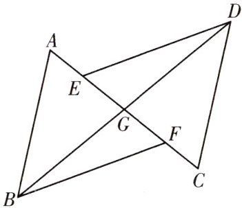 10.(2024·广安市期中)如图,$\triangle AGB$与$\triangle CGD$关于点$G$中心对称,若点$E$,$F$分别在$GA$,$GC$上,且$AF=CE$,求证:$BF=DE$.