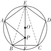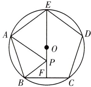 14. (一题多设问)如图,已知五边形ABCDE是⊙O的内接正五边形,过点E作EF⊥BC于点F,点P是线段EF上的动点,连接AP,BP.