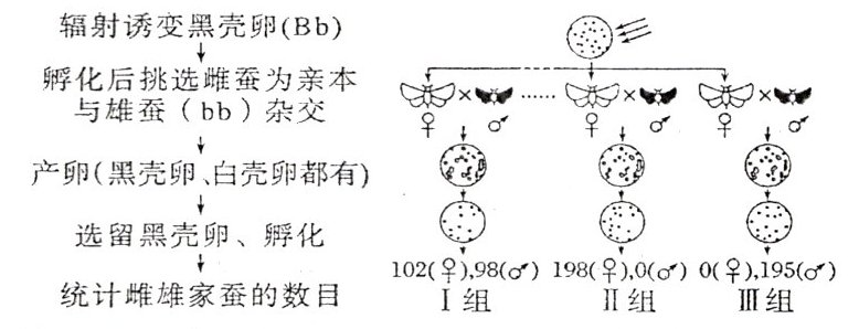 染色体上。②将Ⅱ组所得雌蚕与白壳卵雄蚕(bb)杂交,子代中雌蚕的基因型是