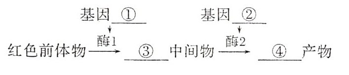 。(4)下图为太阳鹦鹉眼色素合成的可能途径,写出控制酶合成的基因和色素的颜色。