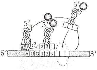 )A.图示翻译过程中,各核糖体从 mRNA 的 3'端向 5'端移动