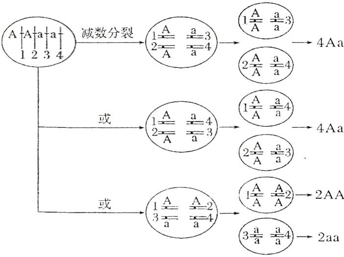 (2) 同源四倍体(基因型为AAaa)产生配子时染色体以图示的情况进行组合,从而形成不同基因型的配子。