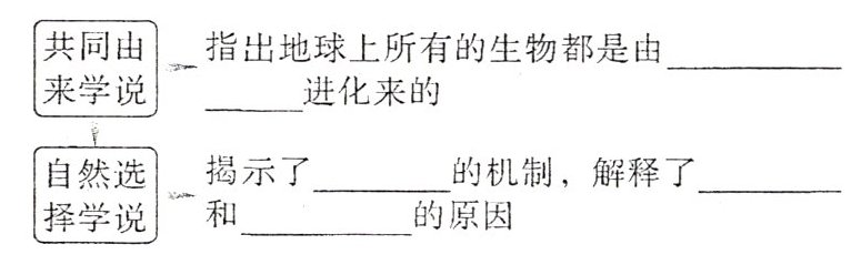 1.原始的共同祖先 生物进化 适应的形成 物种形成