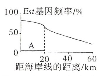 B.随着远离海岸线,区域A中该种蚊子Est基因频率的下降主要由迁入和迁出导致