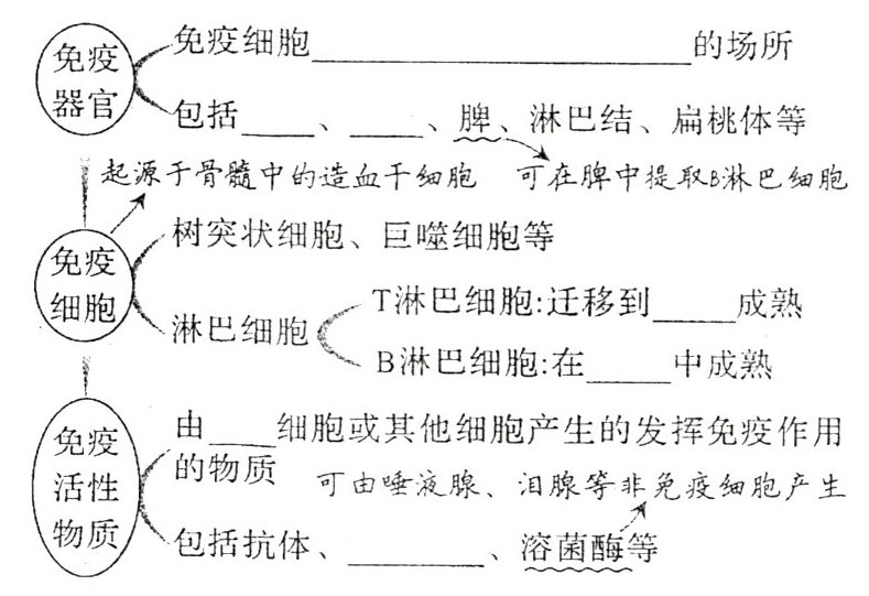 1.生成、成熟或集中分布 骨髓 胸腺 胸腺 骨髓 免疫 细胞因子