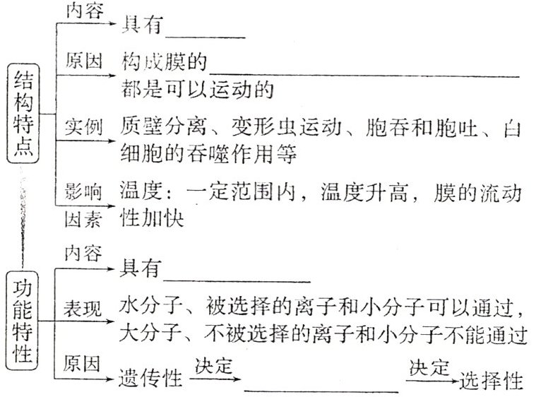 (2)流动性 磷脂分子和大多数蛋白质分子 选择透过性 载体种类、数量