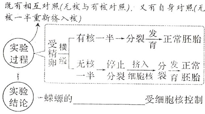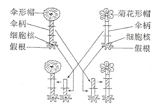(2)提示 决定杯状藻藻杯的形态发生的遗传信息来自细胞核;