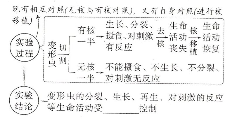 (b)能再生一杯(c)是因为(b)中含有由细胞核转录而来的遗传信息