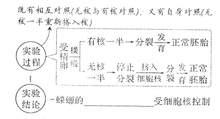 1.(1)细胞核 (2)细胞分裂、分化 (3)细胞核 (4)③细胞核