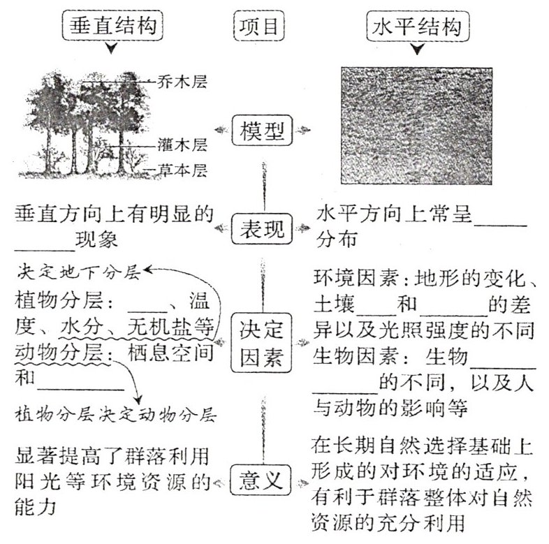 4分层 镶嵌 光照 食物条件 湿度 盐碱度 自身生长特点