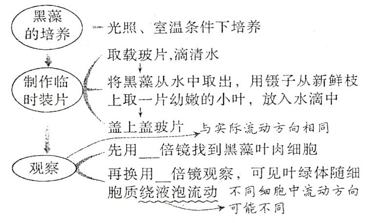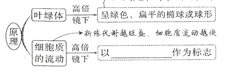细胞质的流动:高倍镜下,新陈代谢越旺盛,细胞质流动越快,以