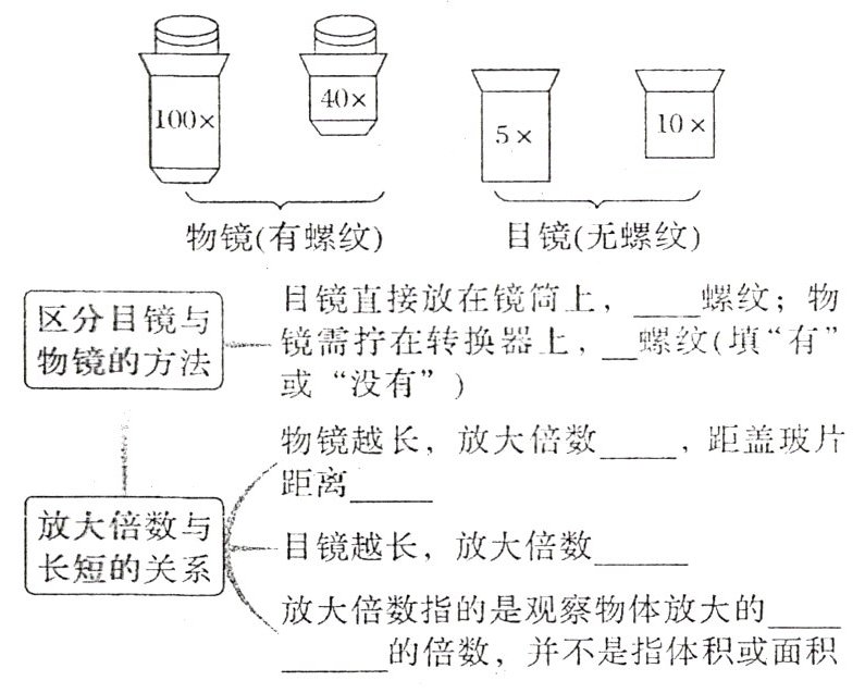 (2)明确镜头的结构及其长短与放大倍数的关系