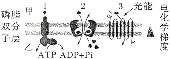 3.B [由图可知,甲侧是膜外,乙侧是膜内,A错误;图中生物膜不可能是线粒体内膜,因线粒体内膜是有氧呼吸第三阶段的场所,产生ATP,C错误;类型2是协同运输,属于主动运输,D错误。]