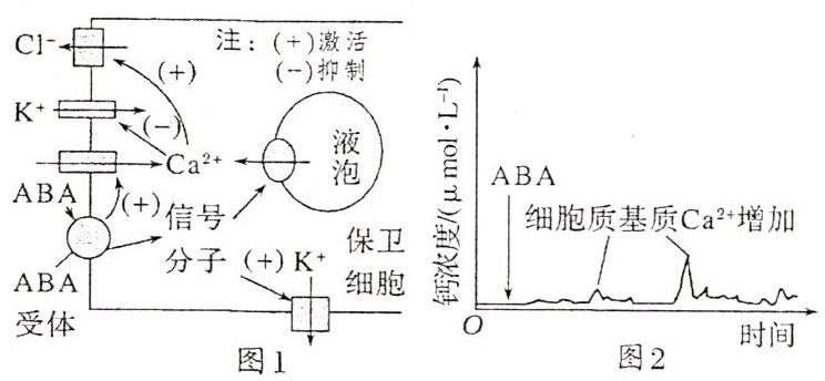 D.ABA使保卫细胞中$K^{+}$浓度和$Cl^{-}$浓度均降低,导致细胞失水、气孔关闭