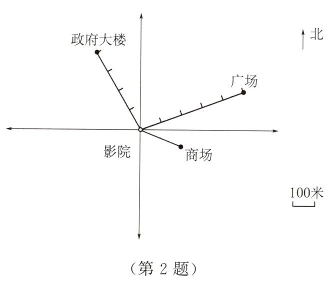 (2)影院在广场的( )偏( )方向上,距离是( )米。
