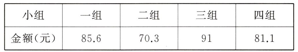 1. 2020年新冠肺炎疫情期间,学校爱心社团4个小组向疫情严重地区捐款,每组捐款金额如下: