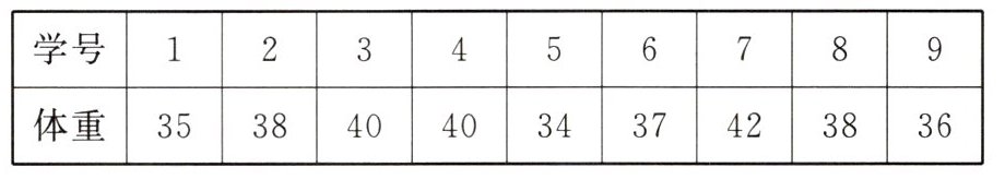 2. 冬冬记录了本学期班内9名同学的体重。(单位:千克)