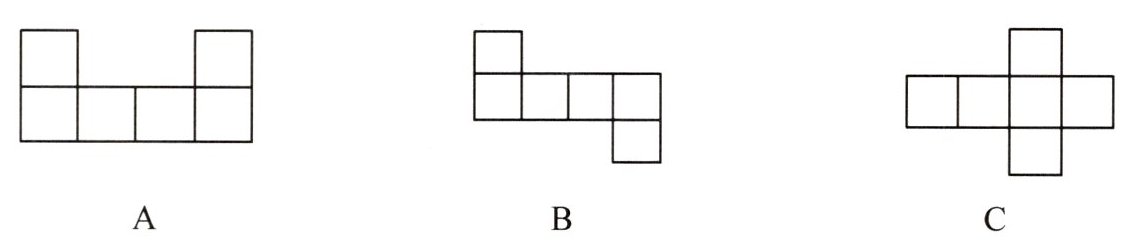 3. 下面三个图形中不能拼成正方体的是 ( )