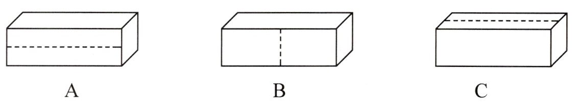 7. 把一个长8厘米、宽6厘米、高4厘米的长方体,切成两个长方体,下图中______的切法增加的表面积最多。 ( )