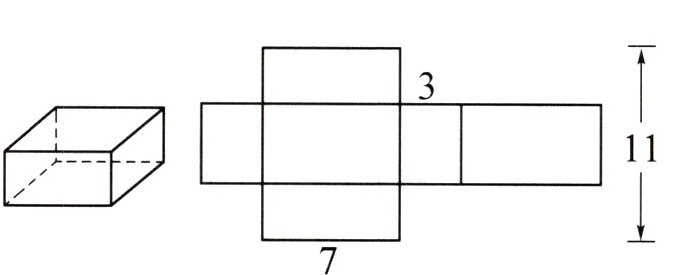 2. 体积:$7×(11 - 3 - 3)×3 = 105$(立方厘米) 表面积:$(7×5 + 5×3 + 7×3)×2 = 142$(平方厘米)