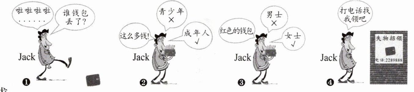 One day, Jack was walking on the street when he found a wallet lying on the ground. He picked it up and said to himself, "Whose wallet is this?" He opened it and saw a lot of money inside. He thought, "So much money! I can buy many things I like." But then he remembered what his parents and teachers had taught him. He knew he shouldn't keep the money. He looked around and thought, "It might belong to an adult." So he decided to find the owner. He saw a lady wearing a red coat and thought, "Maybe it's hers." But he was wrong. Then he saw a man and thought it might be his, but he was wrong again. Finally, he saw a notice of "Lost and Found" with a phone - number. He called the number and said, "Hello, I found a wallet. Can you come and get it?" The owner was very grateful to Jack. Jack felt happy because he did the right thing.